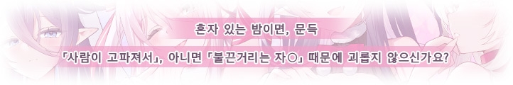 혼자 있는 밤이면, 문득 「사람이 고픈 느낌」이나 「자○의 불끈거림」을 느끼지 않으시나요?
